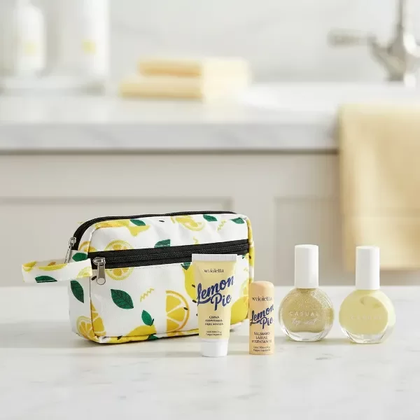 Amarillo limón vibrante y súper canchero! Un color súper trendy Ideal para lucir este verano! Lemon Pie Crema Perfumada para Manos / 30 g protege, hidrata y nutre en profundidad dejando la piel suave y perfumada Lemon Pie Bálsamo Labial Hidratante / 4,2 g contiene manteca de karité, aceite de jojoba y vitamina e nutre y humecta intensamente los labios protegiéndote de la resequedad sensación suave y aterciopelada Casual Esmalte Top Coat con Glitter / 1 tono - 9 ml Casual Esmalte Cremoso / 1 tono - 9 ml 127 Lemon Puddin Ice Lemonade Neceser Lemon Amarelo De cordura. Forrado. Con cierre. Medidas aprox.: 20 x 11,5 cm. bolsillo externo con cierre